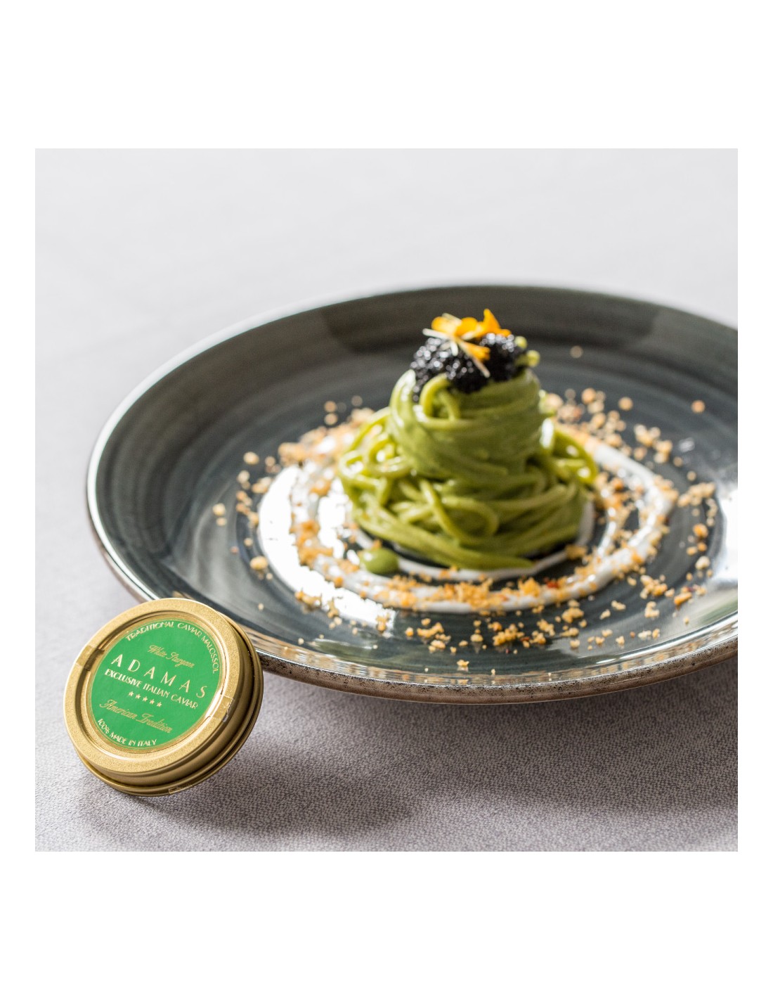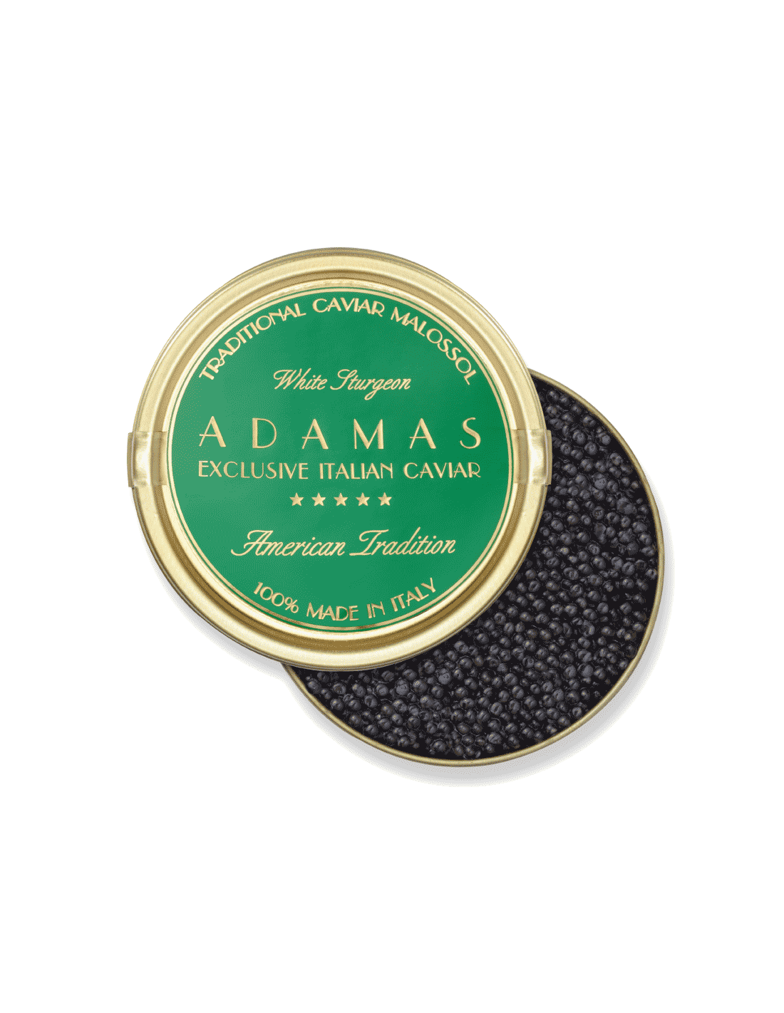 Caviar Green ADAMAS® is a fresh Italian Caviar, native to the North West of North America obtained from the sturgeon Acipenser Transmontanus commonly called White Sturgeon. These sturgeons can weigh over 60 kg and unlike other types of sturgeon their meats are whiter.